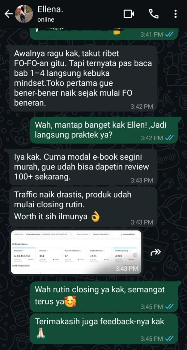 Banyak yang sudah praktekin persis cara di ebook ini: bangun beberapa toko, hajar F.O. sampe 100 ulasan per produk, terus colok iklan. Sekarang? Dia tinggal pantau toko doang, orderan ngalir terus, profit per bulan stabil.